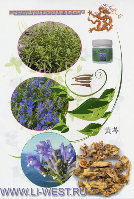 С Бай Шао Яо, Чжи Цзы, Хуан Бай, My Дань Пи или Да Хуан при расстройствах влажного жара с дизентерией, носовыми кровотечениями или кровавой рвотой; вместе с другими охлаждающими травами, такими, как Хуан Лянь, при сопровождающихся температурой простудах с густыми желтыми выделениями, жаждой и раздражительностью; с Ся Ку Цао при скованности и головных болях вследствие повышенного огня печени |